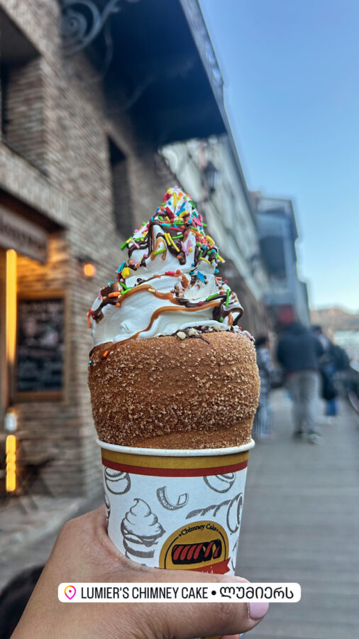 As the day turned into night, Tbilisi came alive. The city lights twinkled, traditional music filled the air, and the delicious aroma of fresh Khachapuri (cheese-filled bread) drifted through the streets and not to miss the Chimney cake rolls for sure.